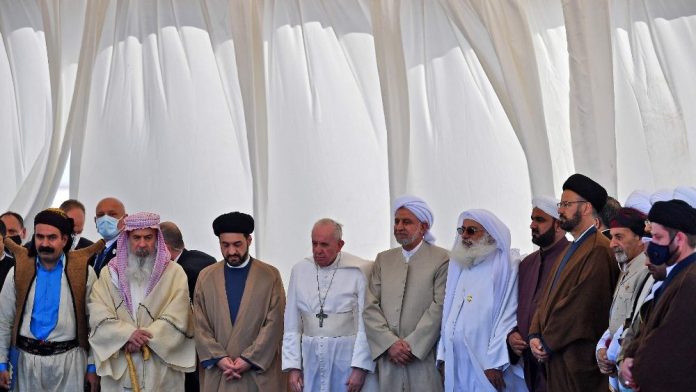 Setelah pertemuan tersebut, Paus berkumpul dalam doa bersama Muslim, Yahudi, perwakilan dari Gereja Kristen Irak, dan anggota agama minoritas Irak, termasuk Yazidi dan Saba, yang bersama-sama memohon kepada Tuhan untuk perdamaian, rekonsiliasi dan kekuatan untuk membangun kembali bangsa yang telah porak-poranda karena konflik.